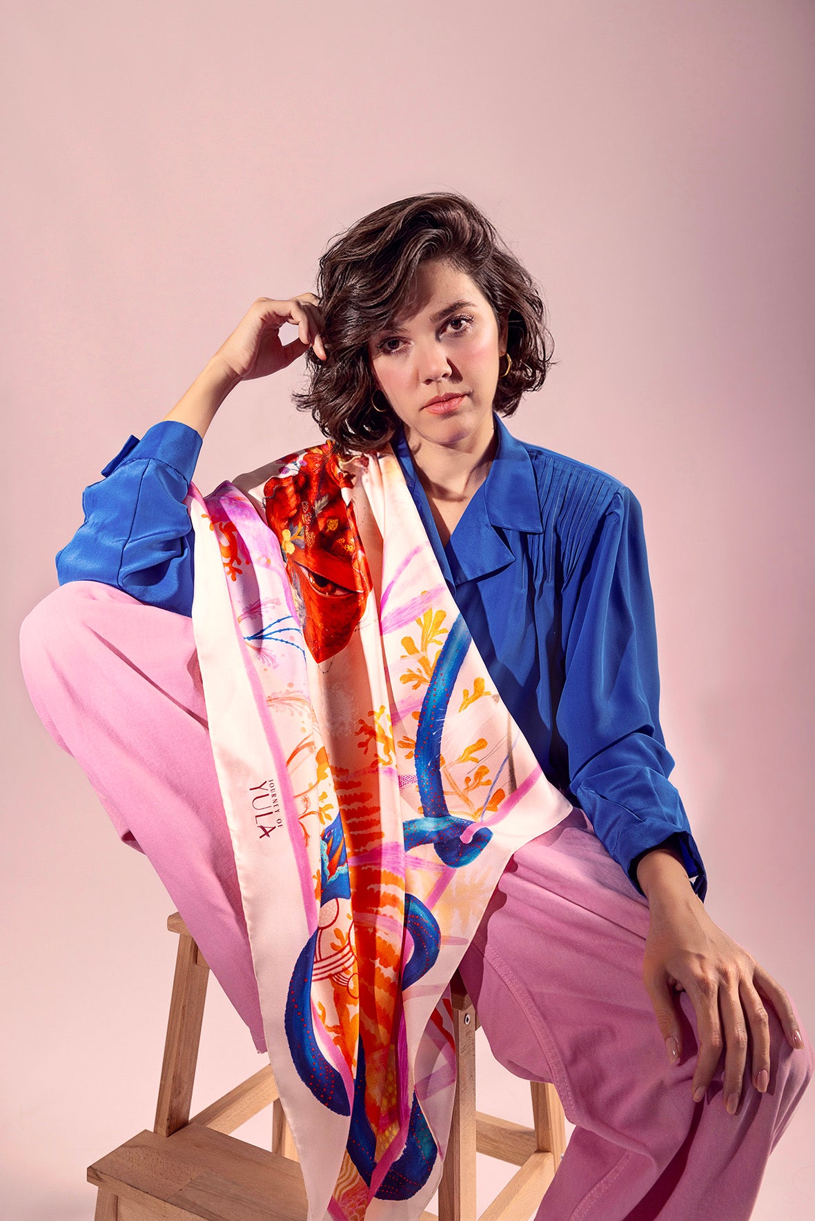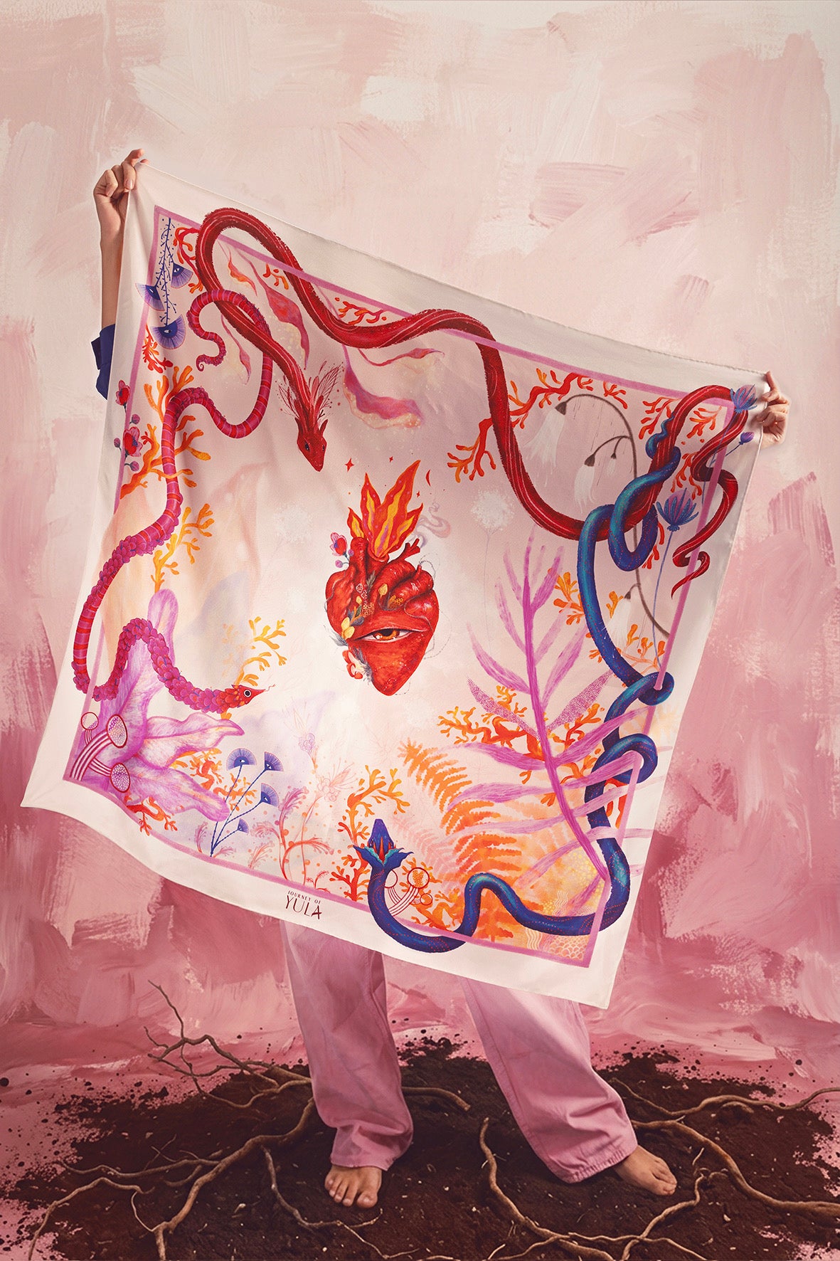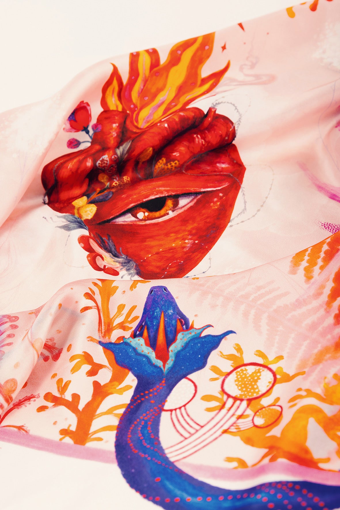 Sanatçı Elif Yemenici tarafından özenle elde çizilen desenler, %100 İpek Twill’in zamansız zarafetiyle buluşuyor.