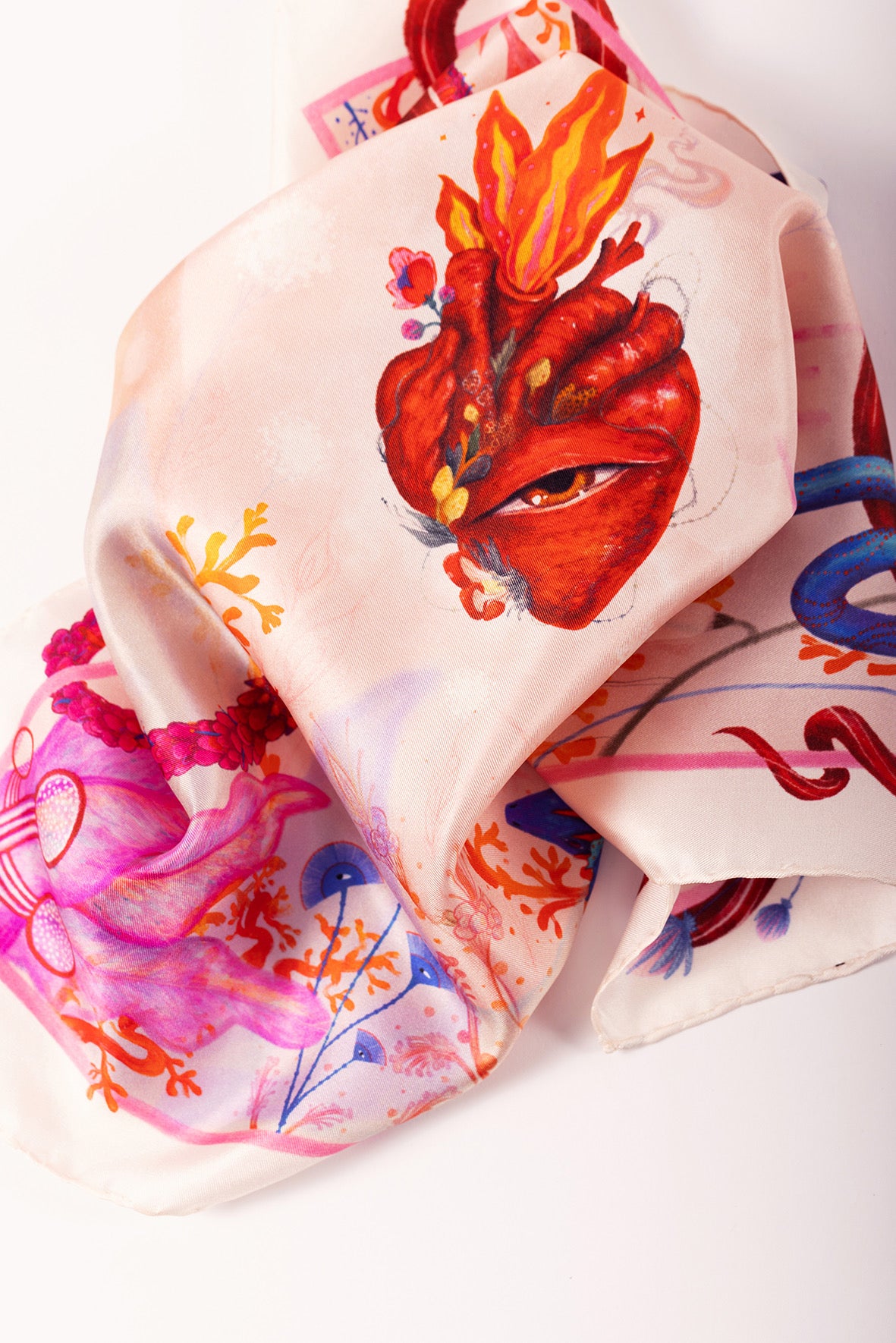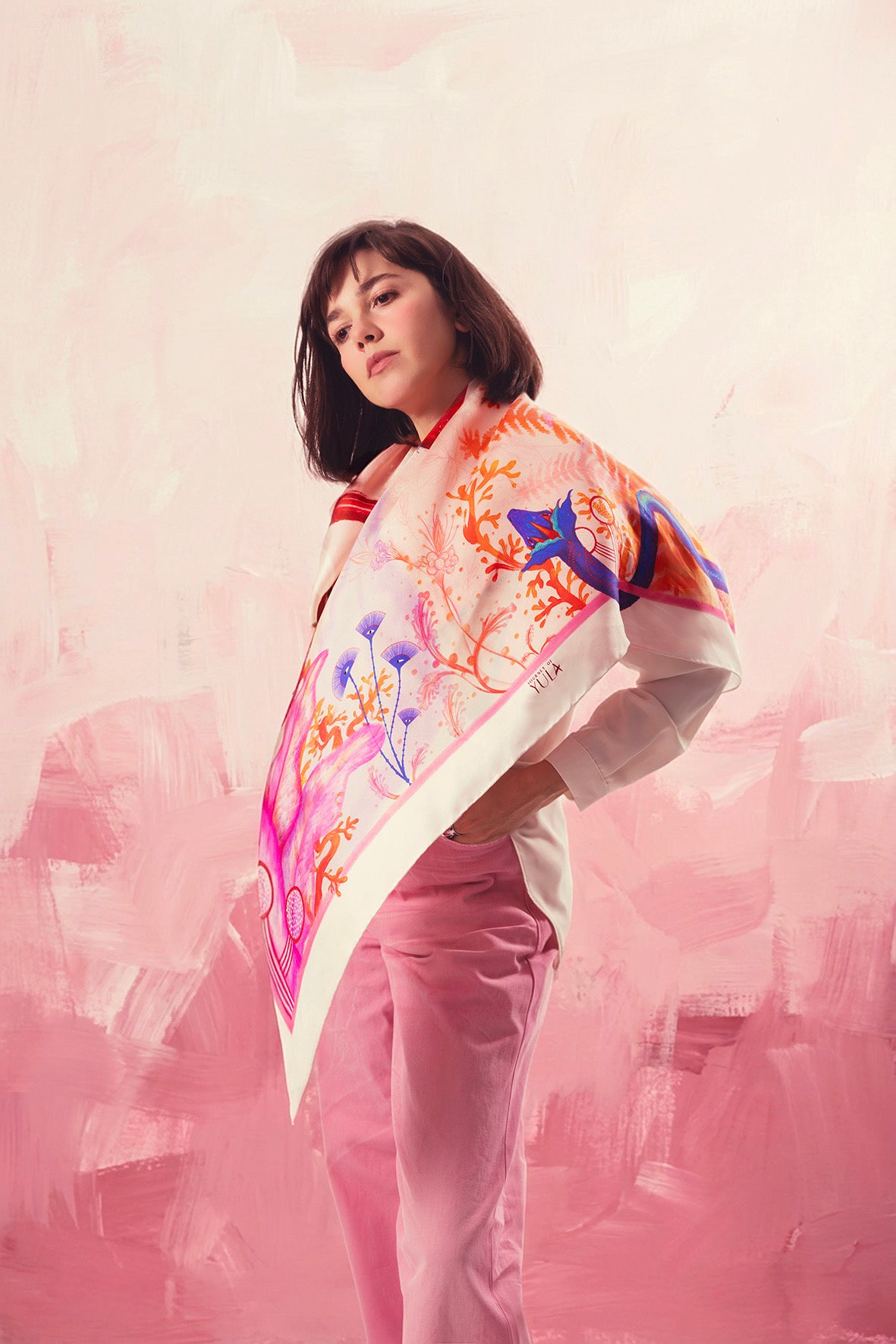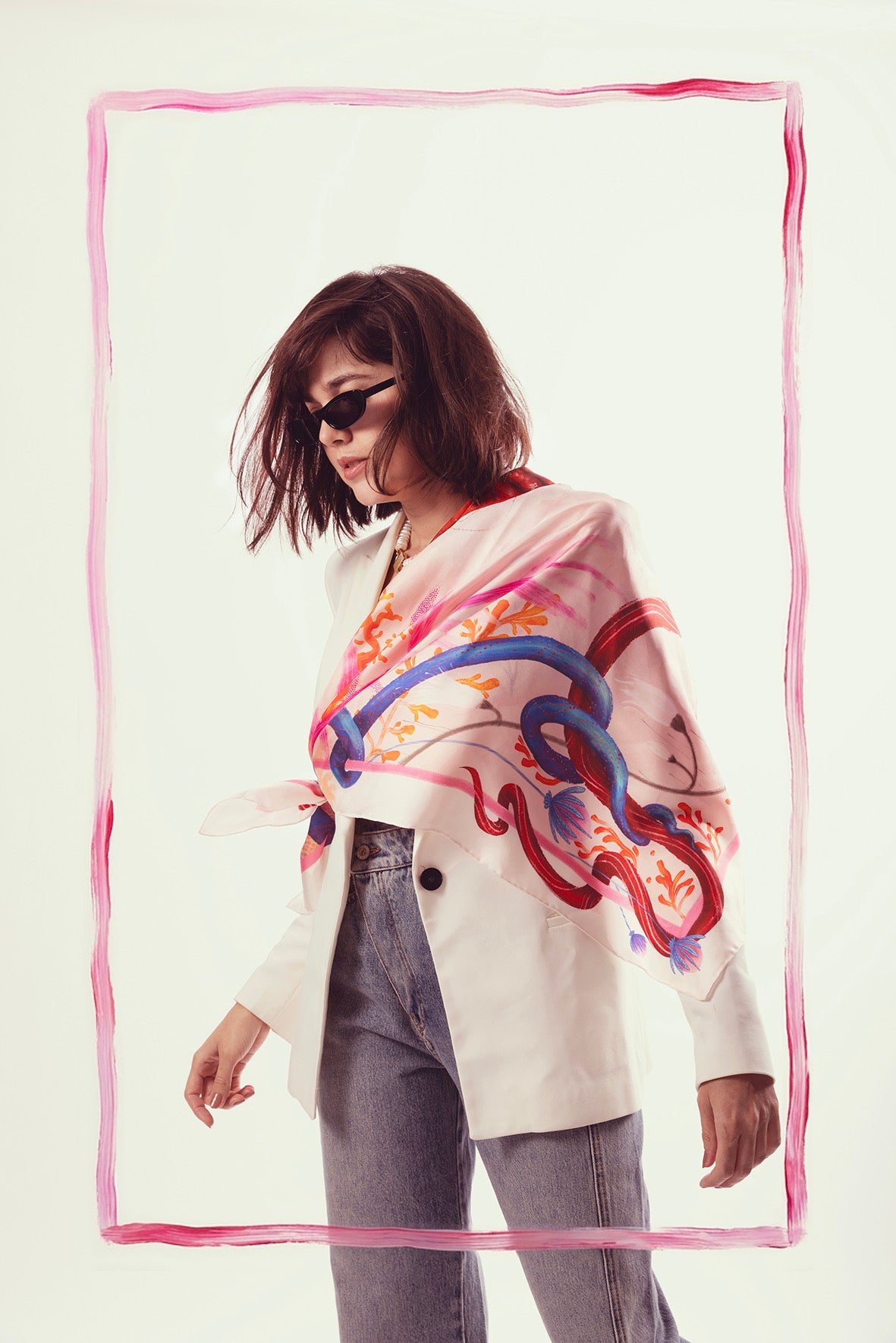 Sanatçı Elif Yemenici tarafından özenle elde çizilen desenler, %100 İpek Twill’in zamansız zarafetiyle buluşuyor.